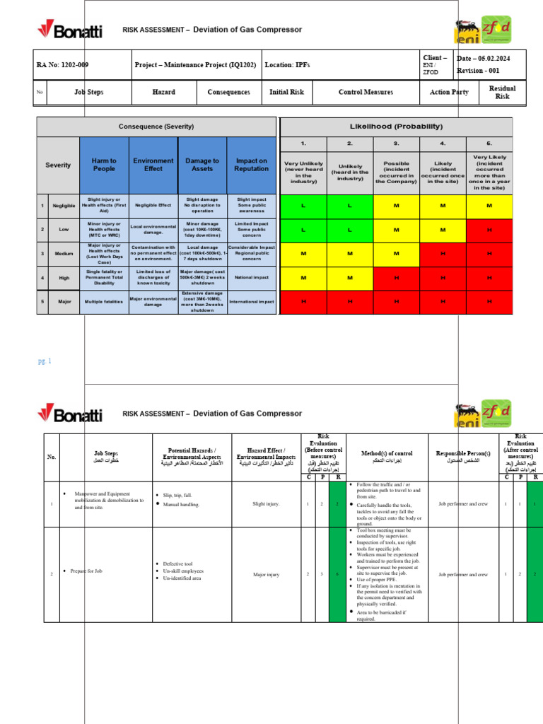Deviation Compressor Maintenance Bonatti Form | PDF | Risk | Hazards