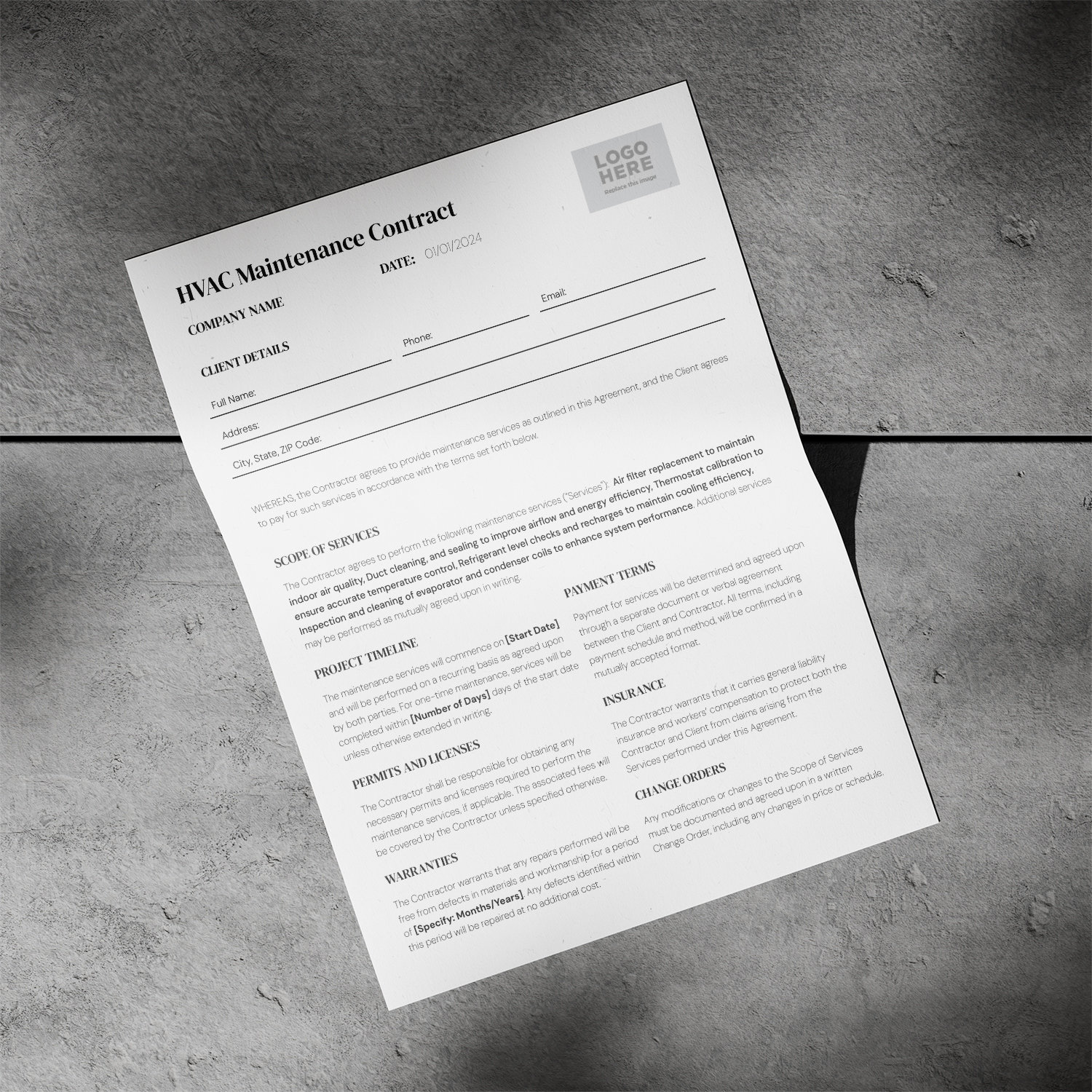 √ HVAC Contract Template (Word)
