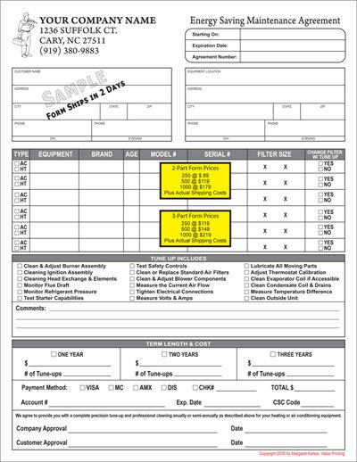 HV-1032 HVAC Service Maintenance Agreement Contract - Value Printing