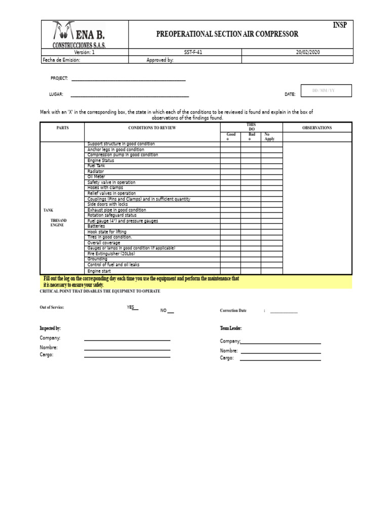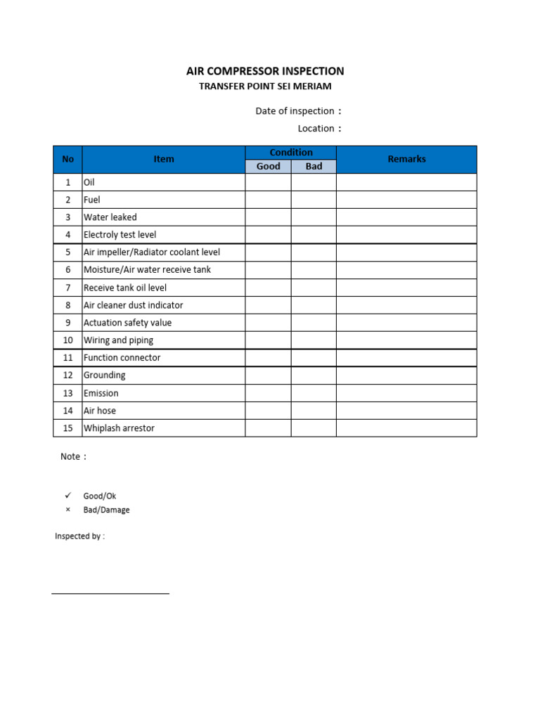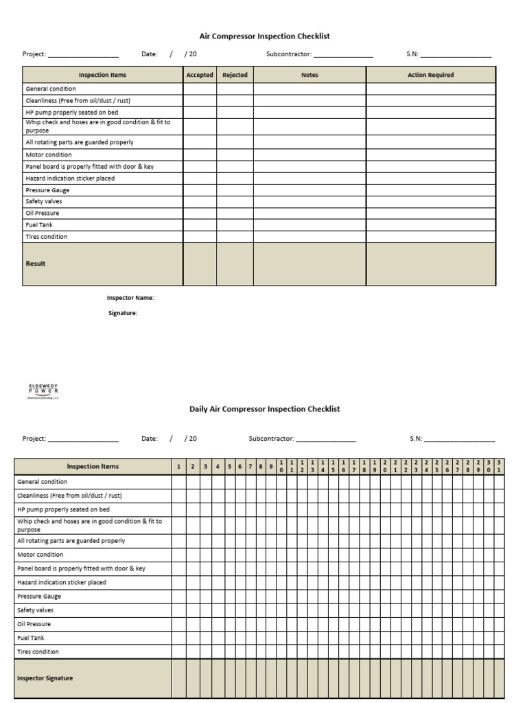 Air Compressor Inspection Sheet at Byron Wells blog