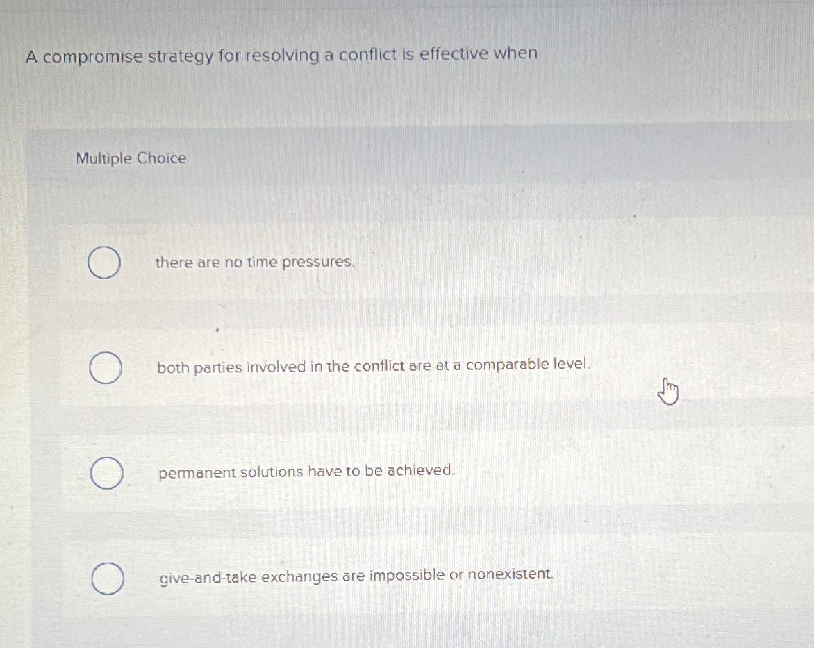 Solved A compromise strategy for resolving a conflict is | Chegg.com