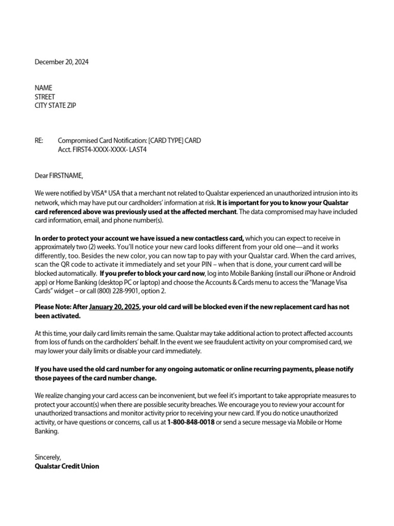December 2025 Visa Card Compromise | Qualstar Credit Union