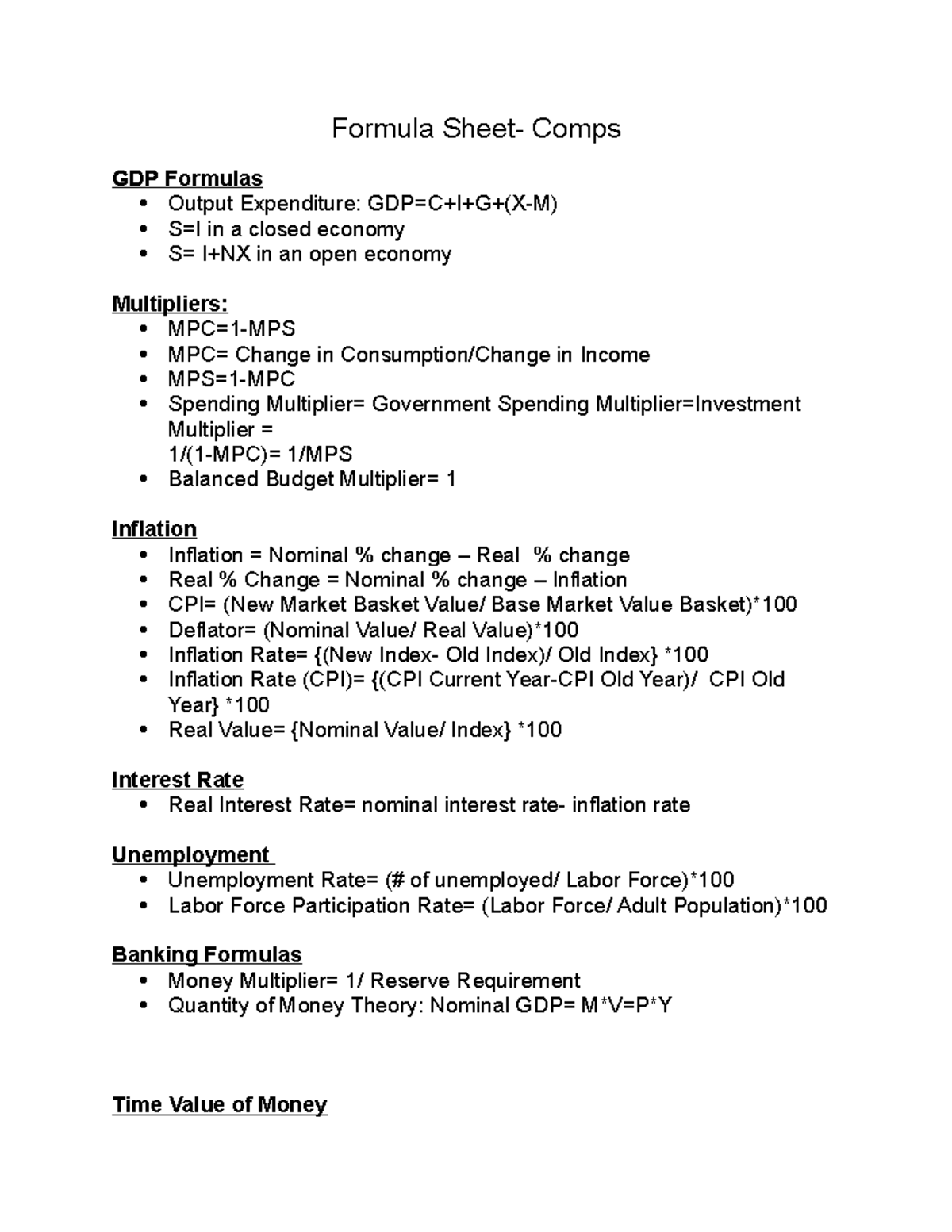 Formula Sheet- Comps - Summary Finance - Formula Sheet- Comps GDP ...