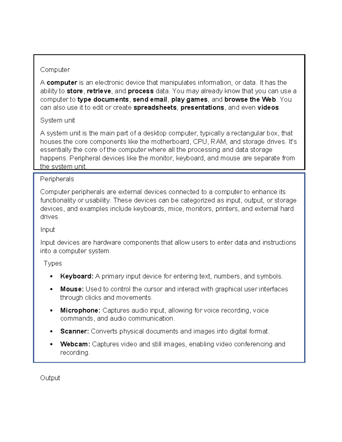 Introduction to Computer: Definition, Basic Terms, and | Course Hero