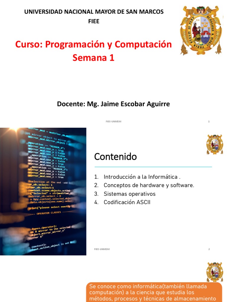 Programacion Computacion Semana 1 | PDF | Informática | Hardware de la ...