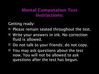 Mental computation test for year 1 for mental calculation | PPT