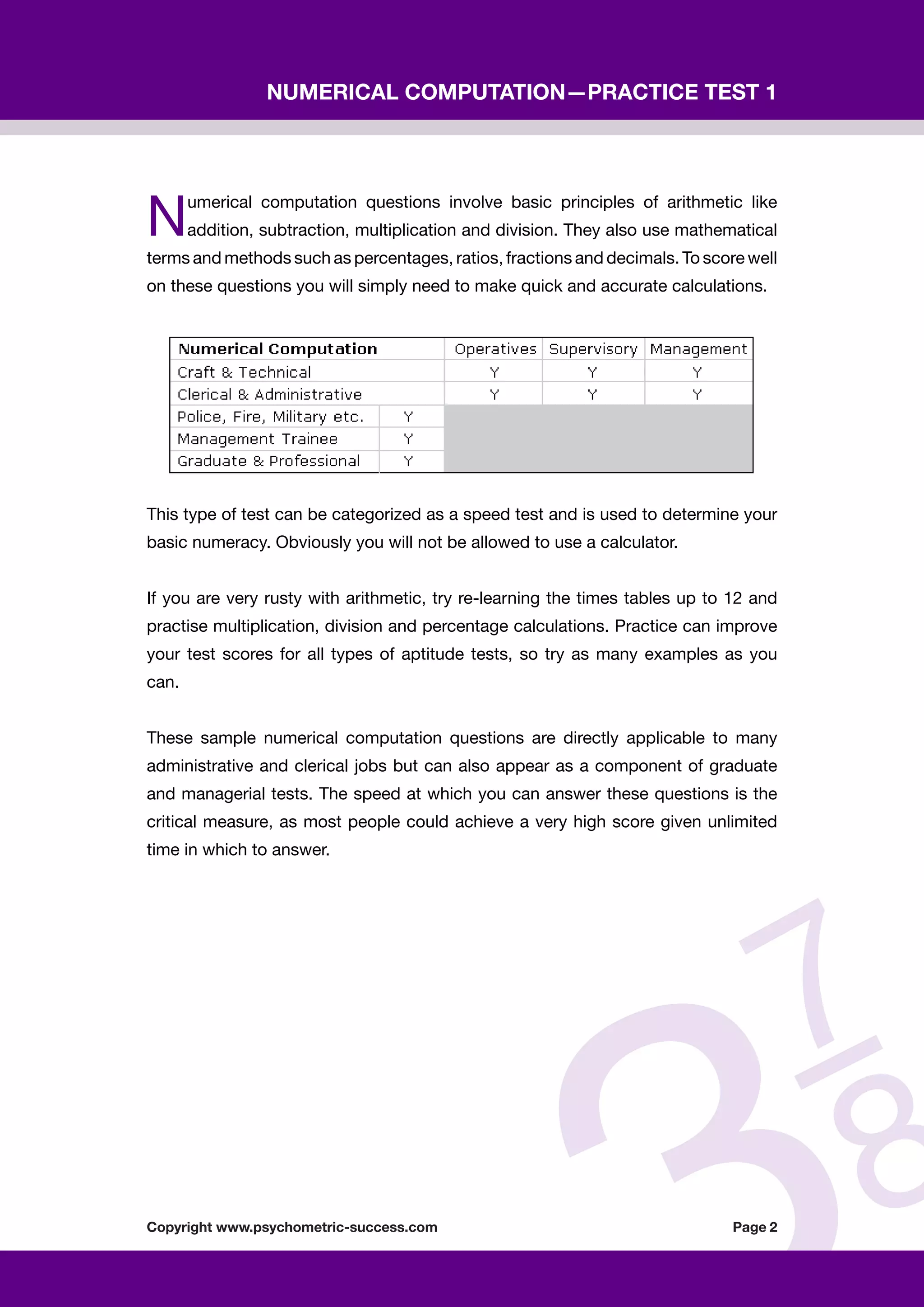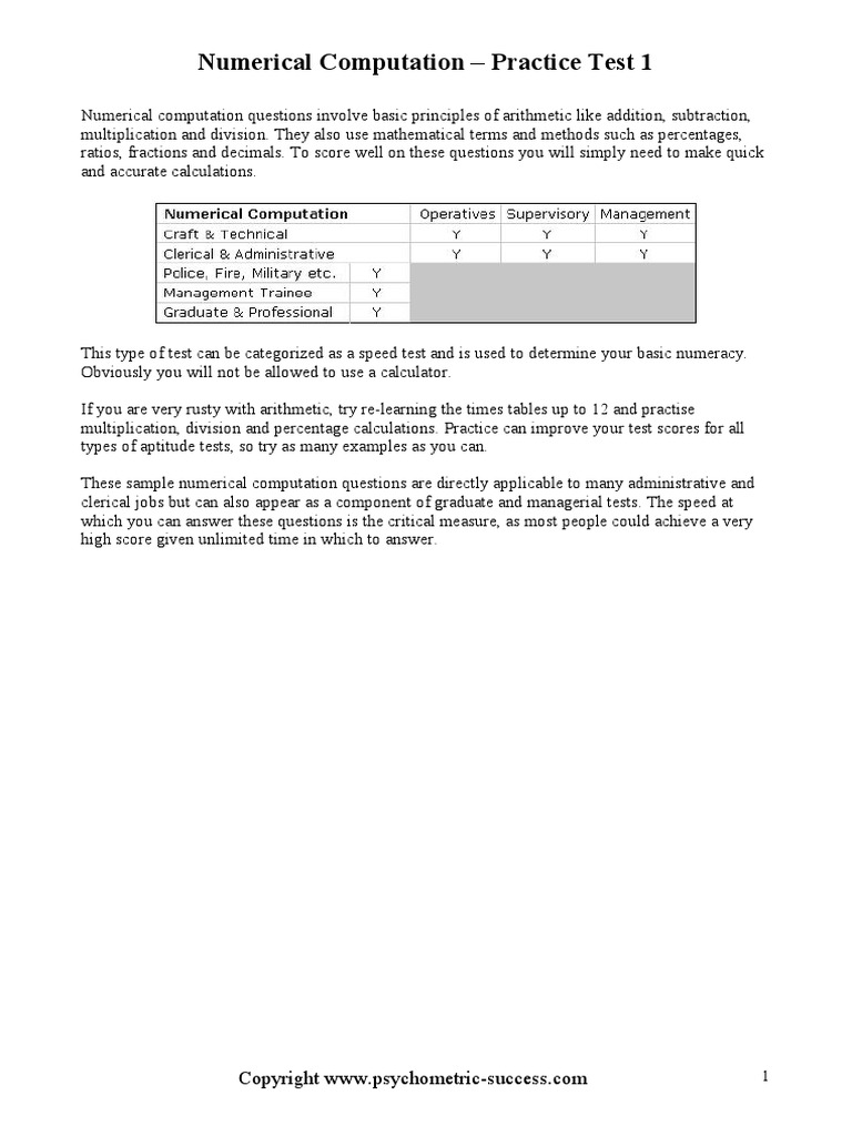 Psychometric success numerical ability computation practice test 1 ...