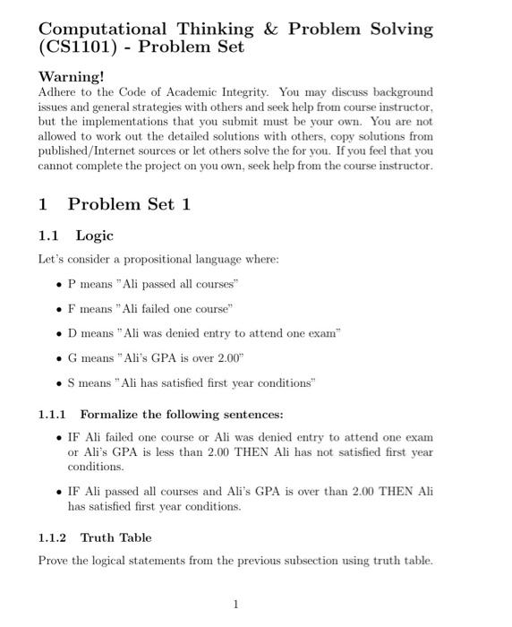 Solved Computational Thinking \& Problem Solving (CS1101) - | Chegg.com