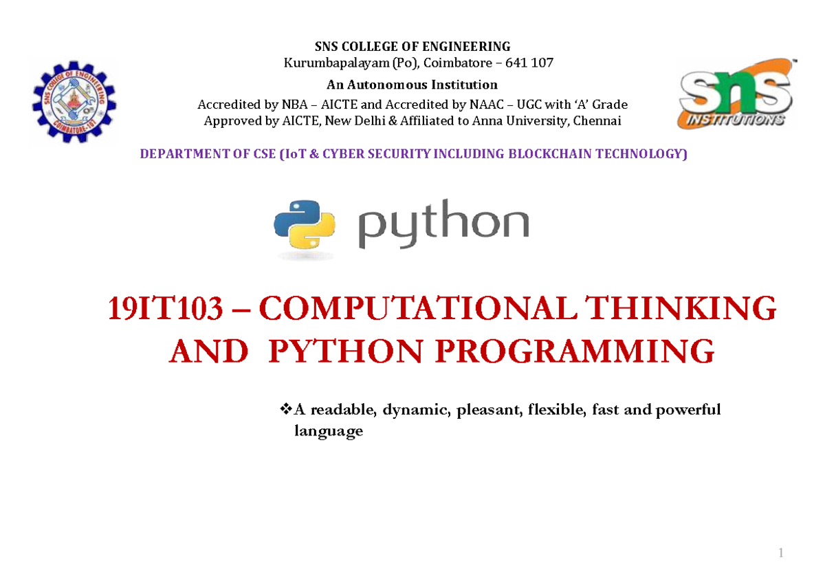 19IT103 Final Exam Notes: Computational Thinking & Python Programming ...