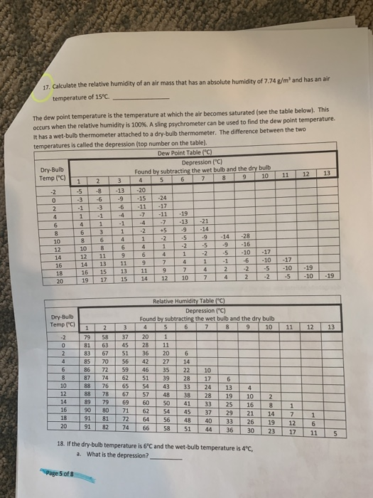 Solved 17. Calculate the relative humidity of an air mass | Chegg.com