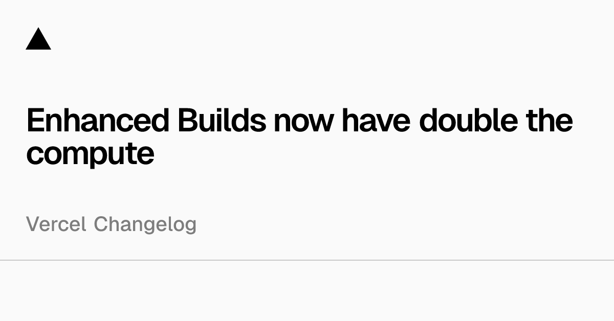 Enhanced Builds now have double the compute - Vercel