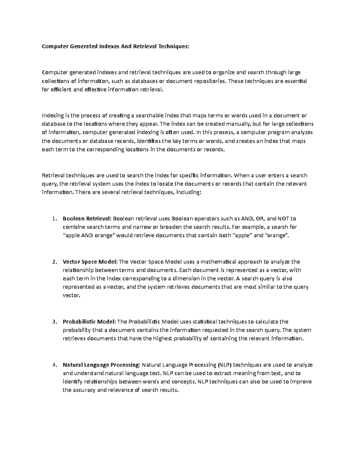 Computer Generated Indexes And Retrieval Techniques - These techniques ...