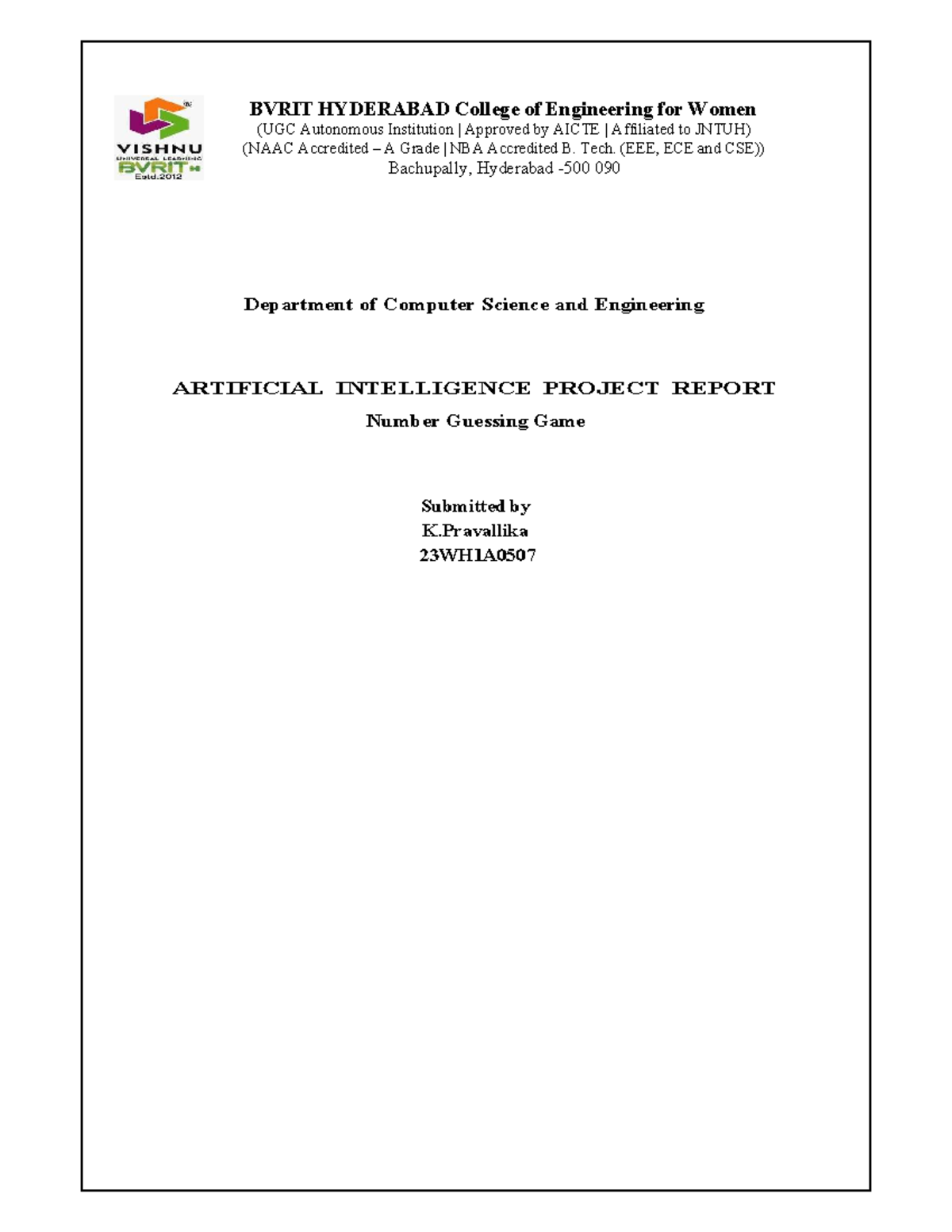 AI Project Report: Interactive Number Guessing Game (CSE 23WH1A0507 ...