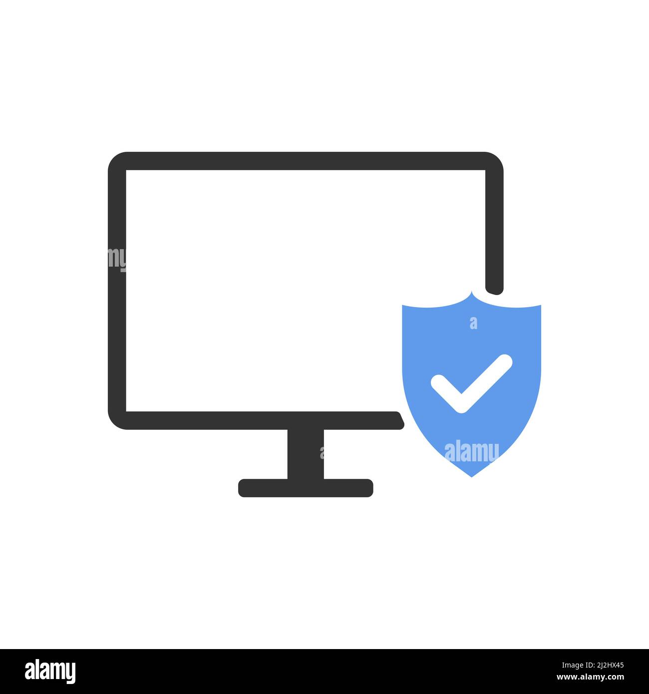Computer and blue approval shield vector icon Stock Vector Image & Art ...