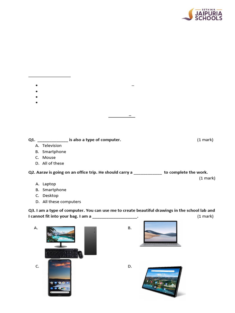 Class I Computer Assessment 2024-25 | PDF | Desktop Computer | Computer ...