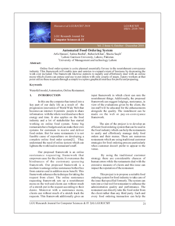 (PDF) Automated Food Ordering System