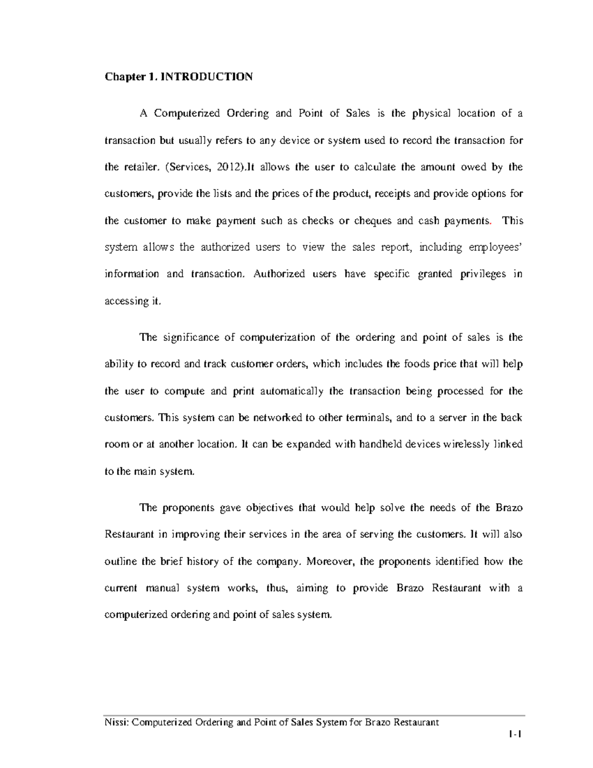 Computerized Ordering and Point of Sales - Chapter 1. INTRODUCTION A ...