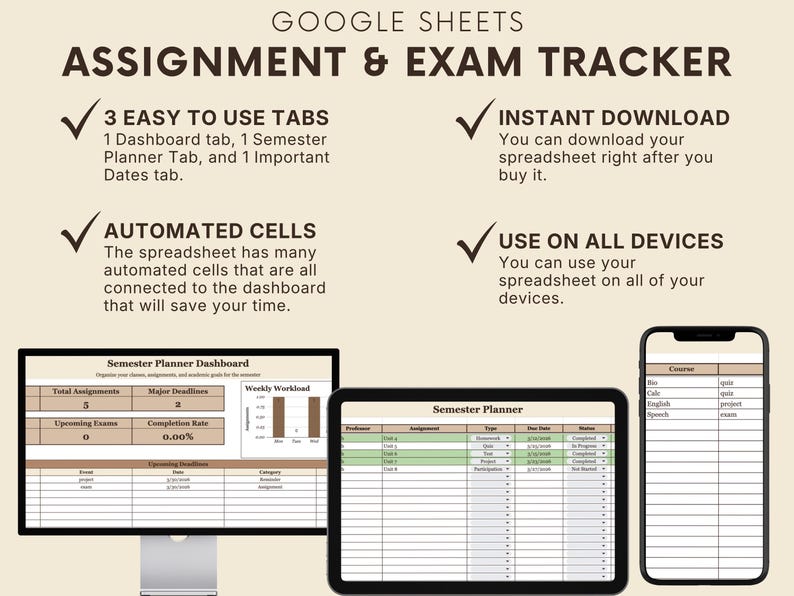 Semester Planner Google Sheets Template | College Semester Organizer ...