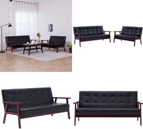 vidaXL 2-delig Bankstel kunstleer zwart - Bankstel - Bankstellen - Bank ...