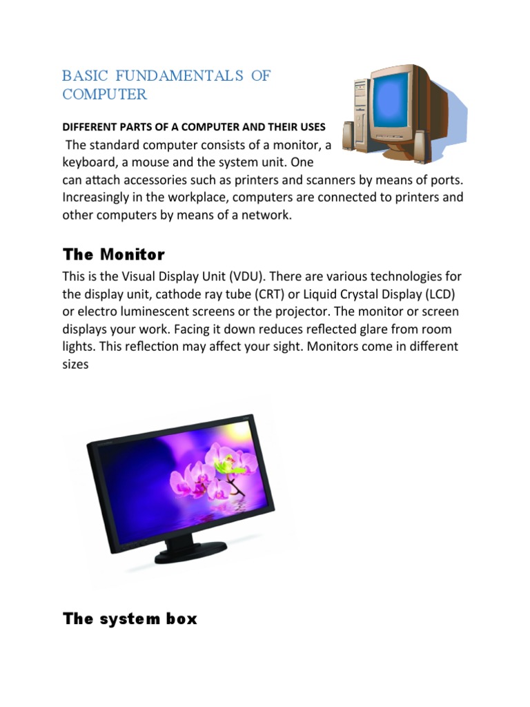Computer Hardware - COMPUTER BASICS Parts of a computer and their ...
