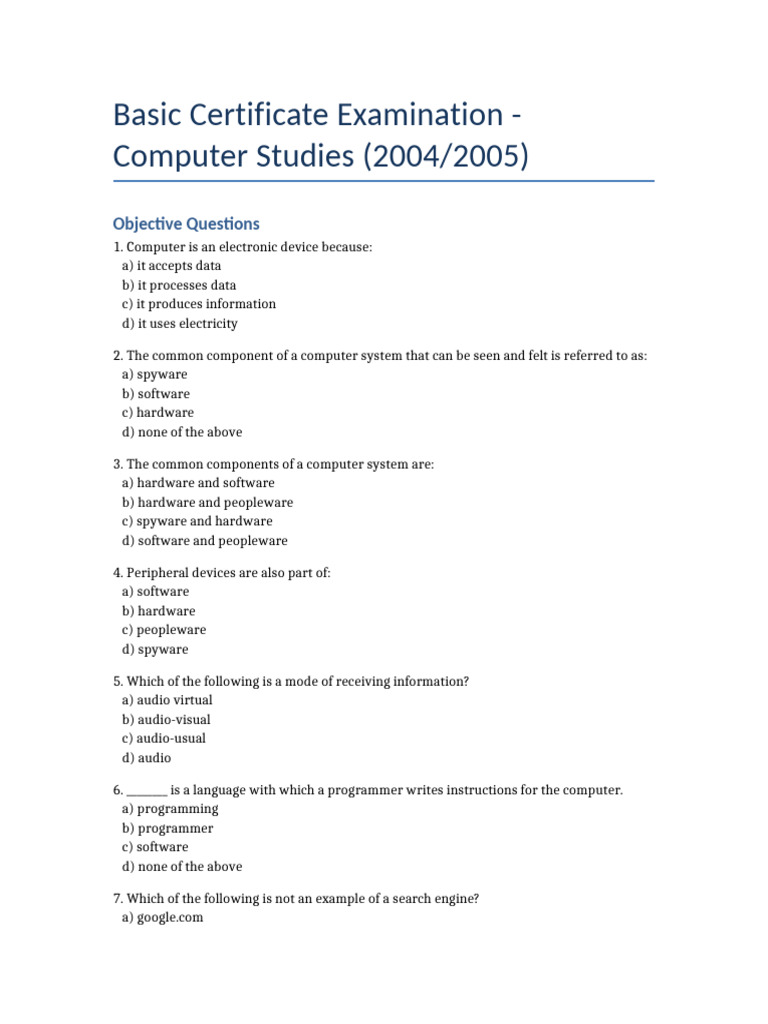 Computer-objective-questions - Computer Objective Questions & Answers ...