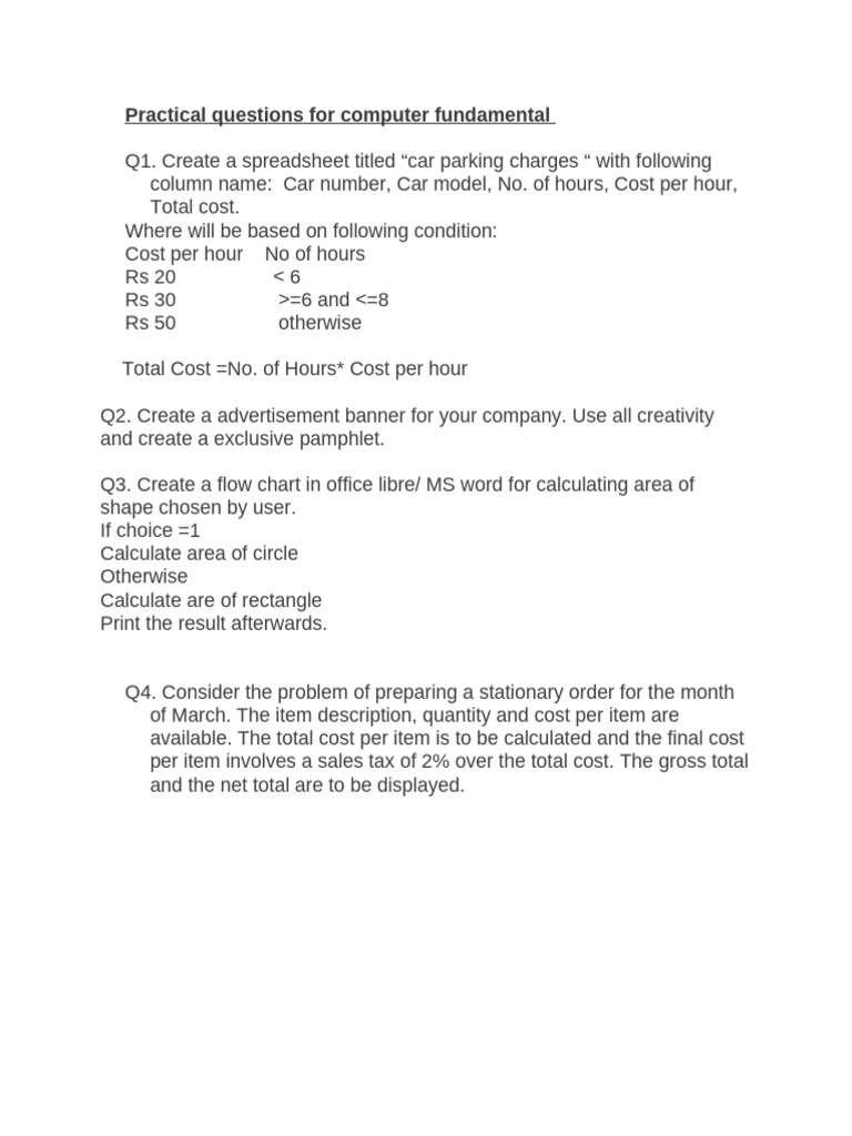 Practical Questions For Computer Fundamental | PDF