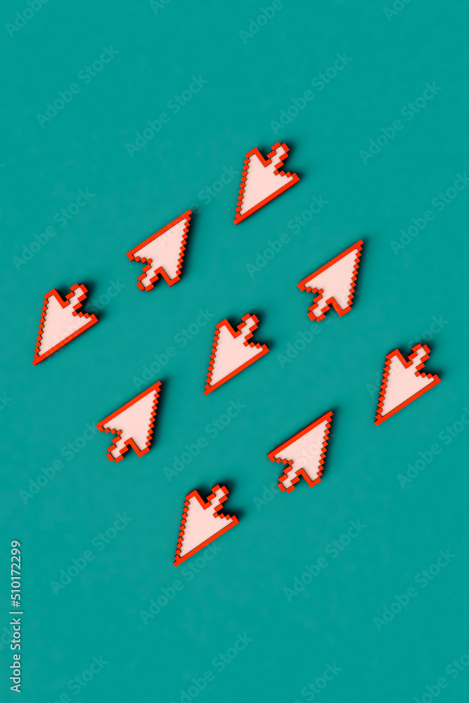 birds-eye view of pink arrow cursors Stock Photo | Adobe Stock