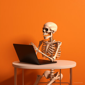 Skeleton working on laptop Stock Photo - Alamy