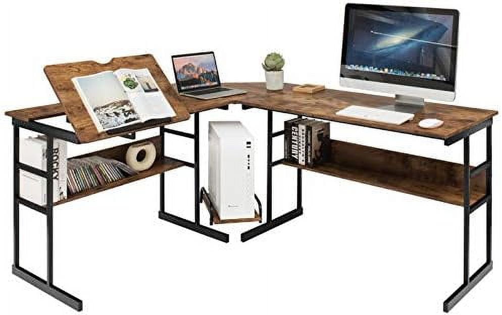 HYHBIBOOM 67 inches L-Shaped Desk Corner Computer Desk with Bottom ...