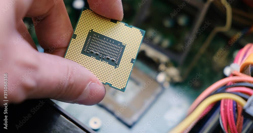 Computer Repair Man Installing A Cpu On Mother Board Repair Of Central ...