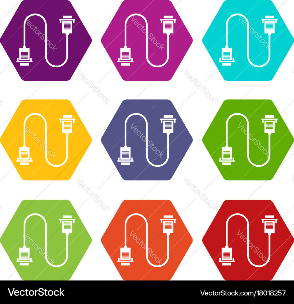 Cable wire computer icons set Royalty Free Vector Image