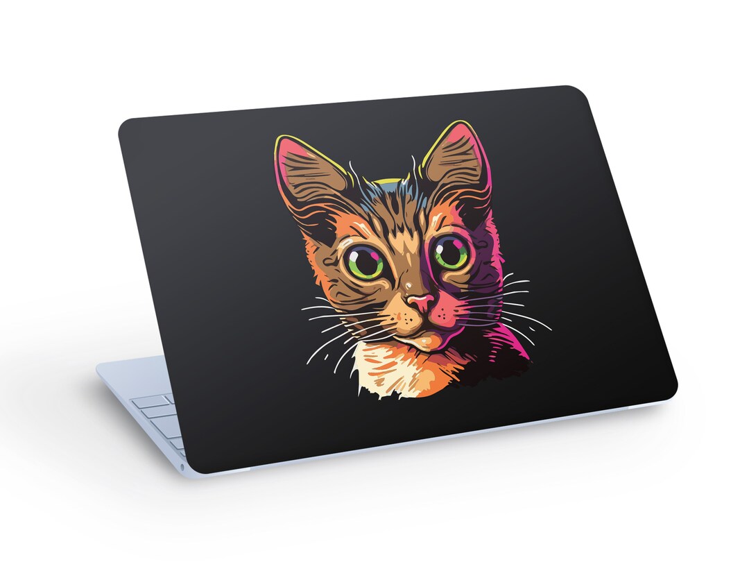 Cool Cute CAT LAPTOP SKIN Decal Sticker, Colorful Smiling Cat Laptop ...