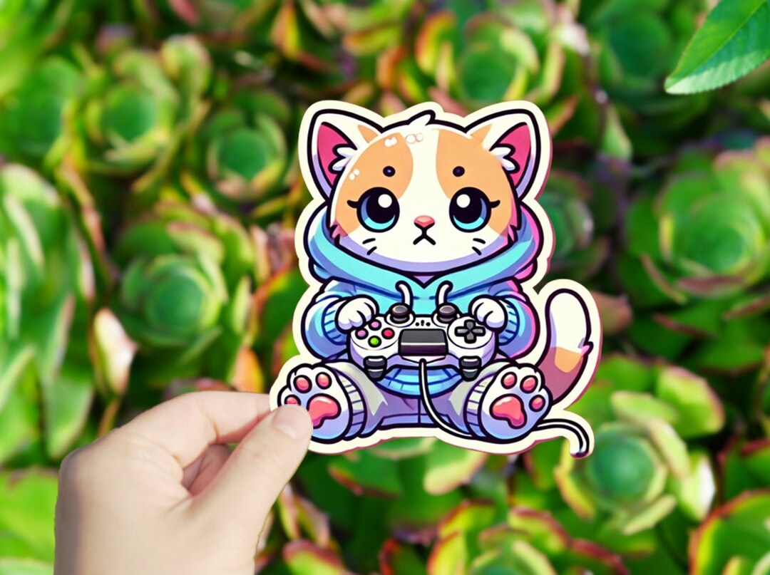 1 Pc Gamer Cat Vinyl Sticker,sticker for Tablet Laptop Wall Car Windows ...