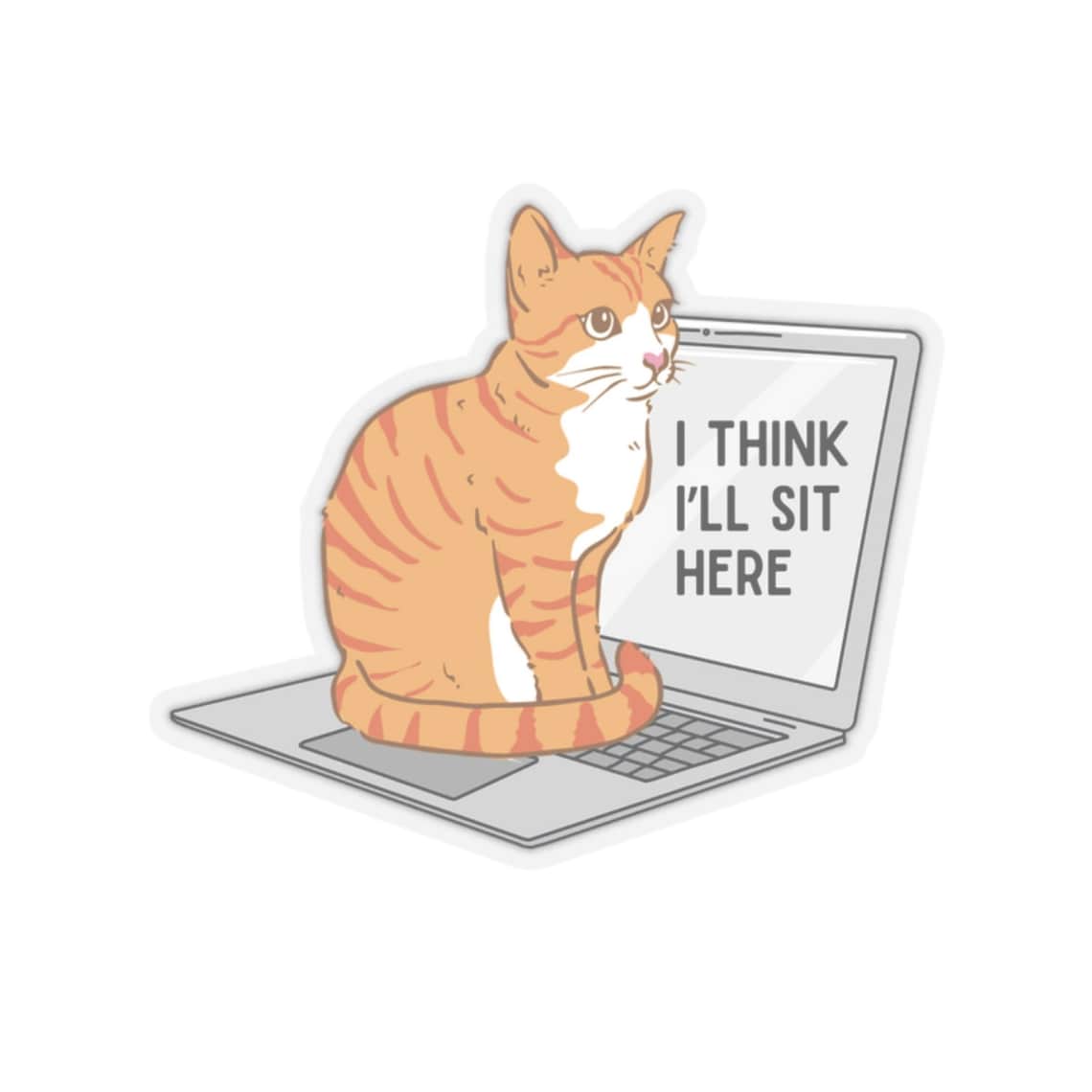 Laptop Cat - Cat On Laptop - Sticker | TeePublic