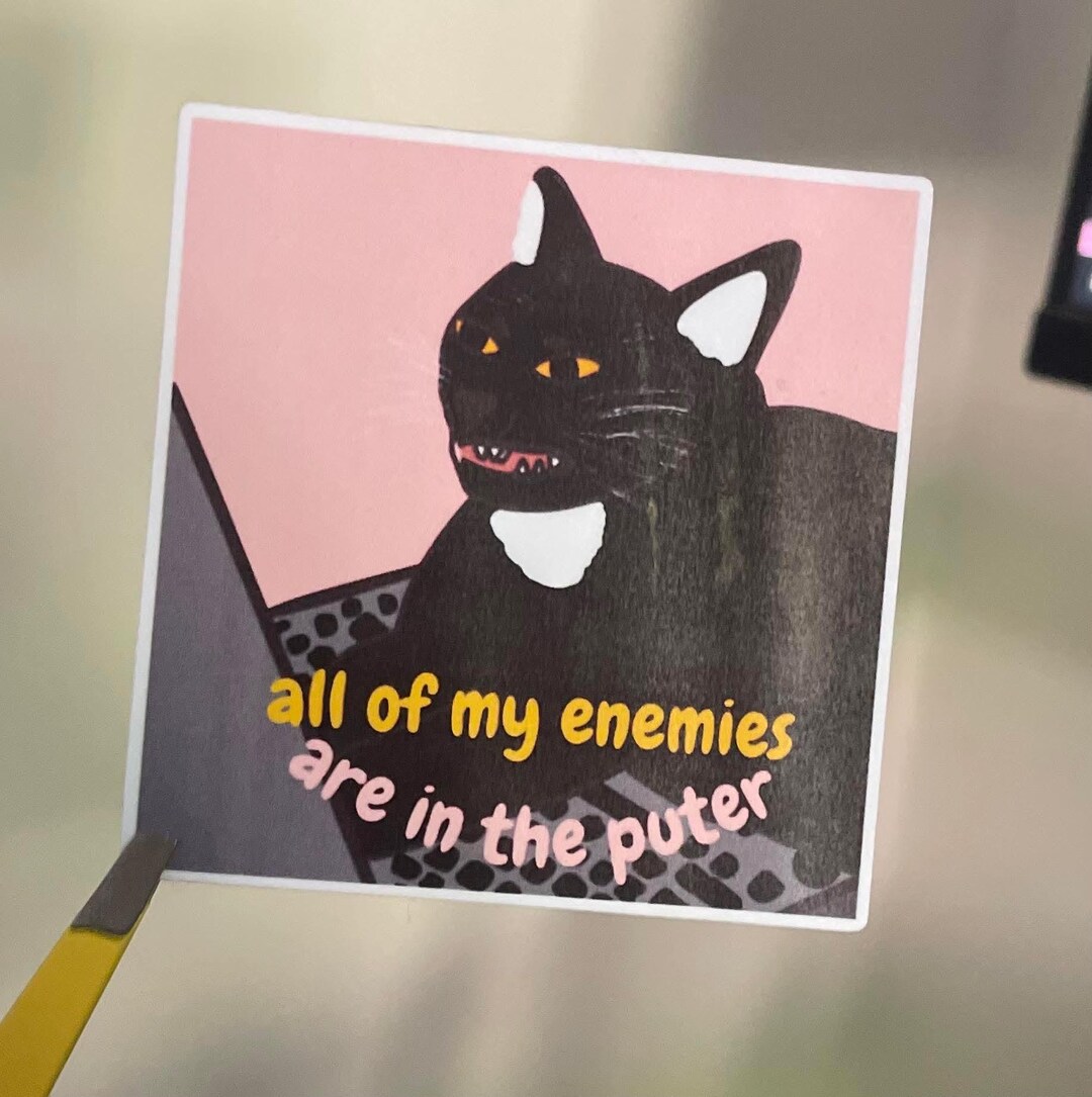 Computer Cat Sticker, Vinyl Sticker, All My Enemies Are in the Puter ...