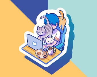 Computer Cat Sticker: Waterproof Laptop Decal - Etsy