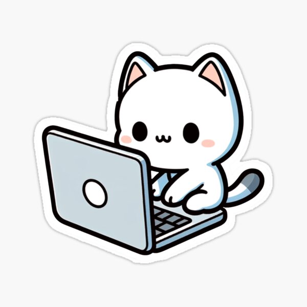 Cute cat programmer with computer sticker for sale by electricninja ...
