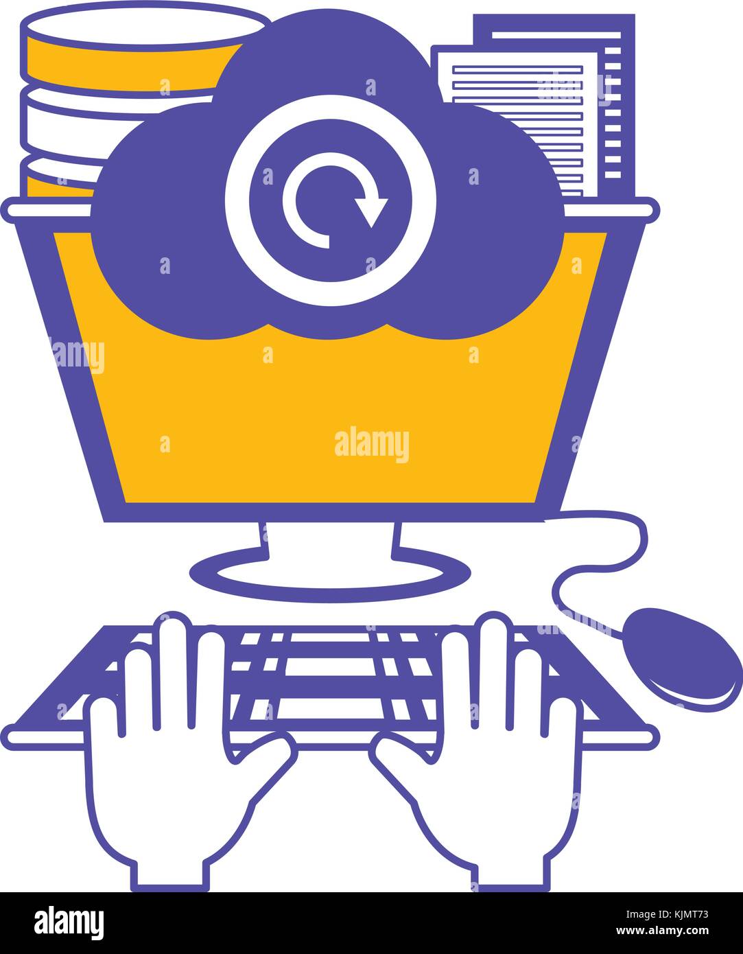 desktop computer with data center disks vector illustration design ...