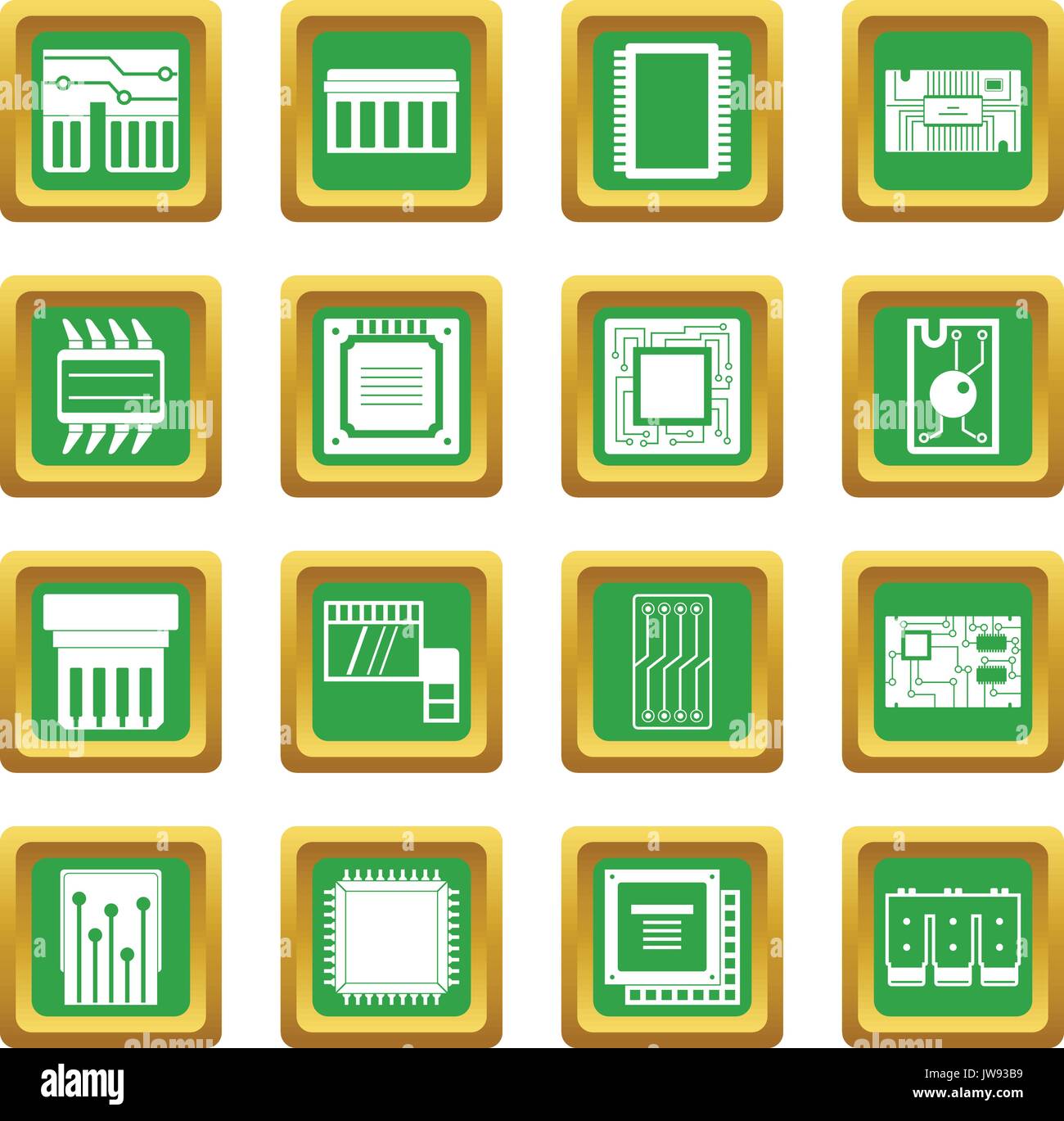 Computer chips icons set green Stock Vector Image & Art - Alamy