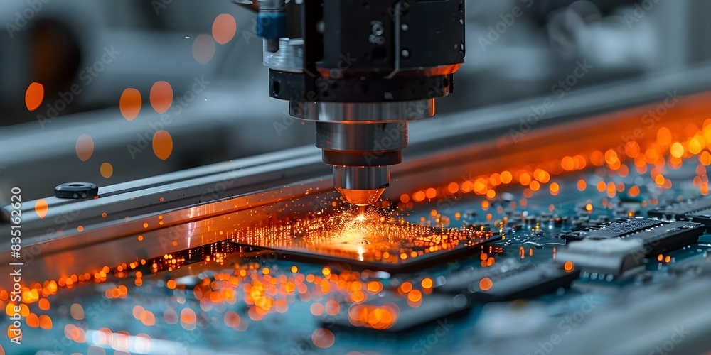 Close-up of Semiconductor Packaging Process. Computer Chips are being ...