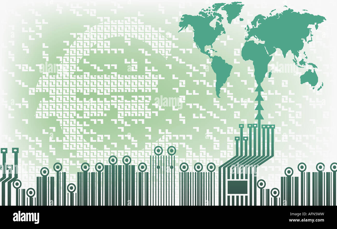 Digital Circuit Board overlay with world map for Global Microprocessor ...