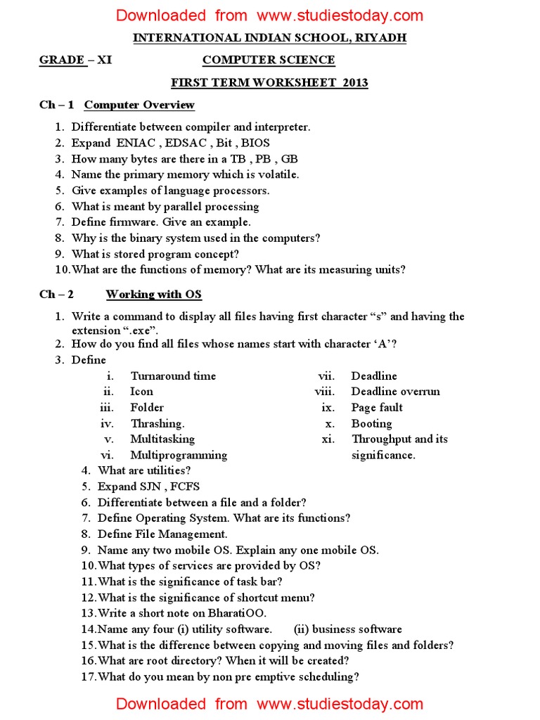 Computer Science Class 11 Term 1 Sample Paper at Patrick Luis blog