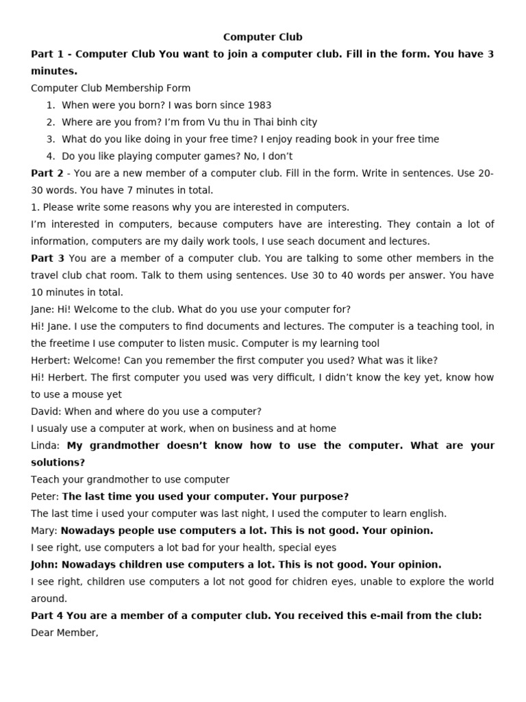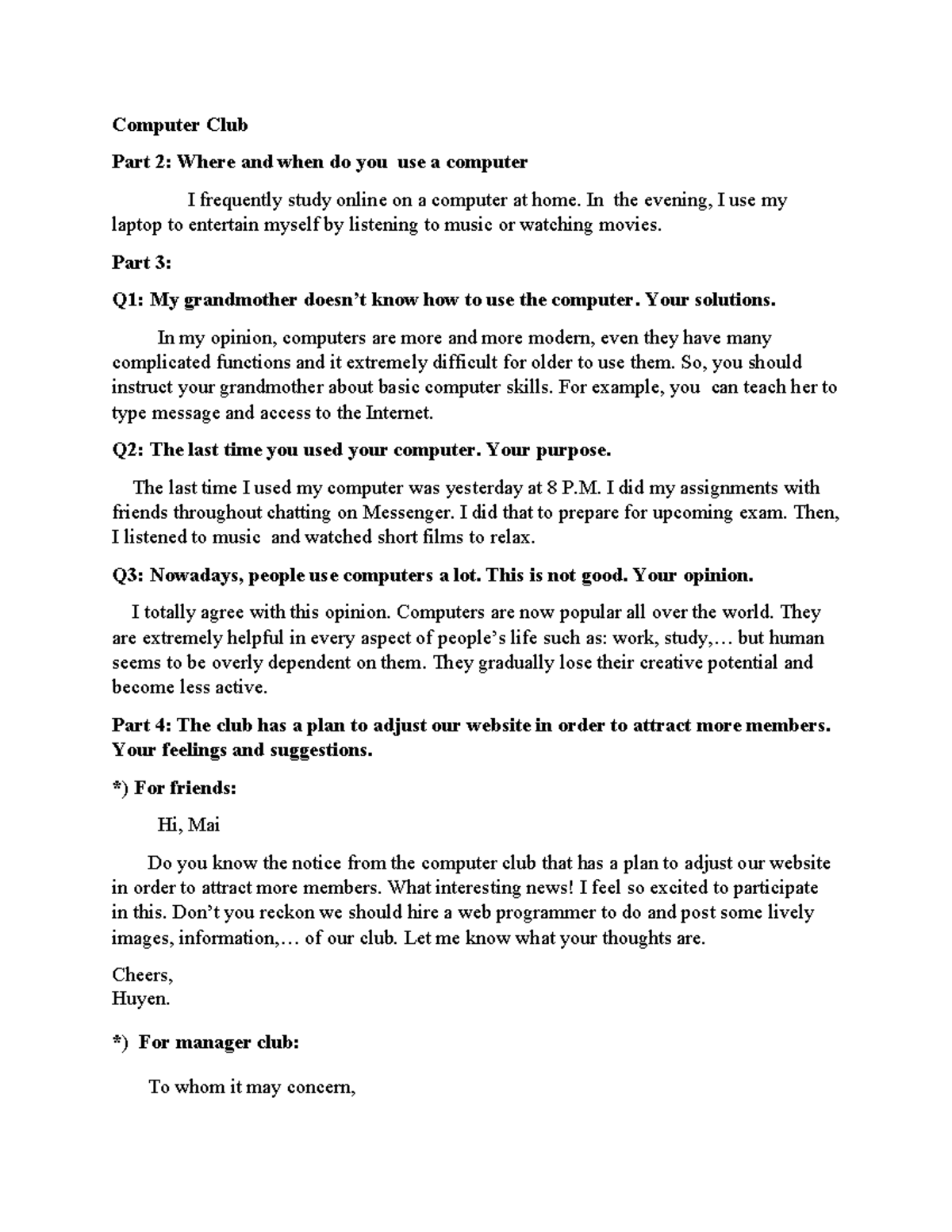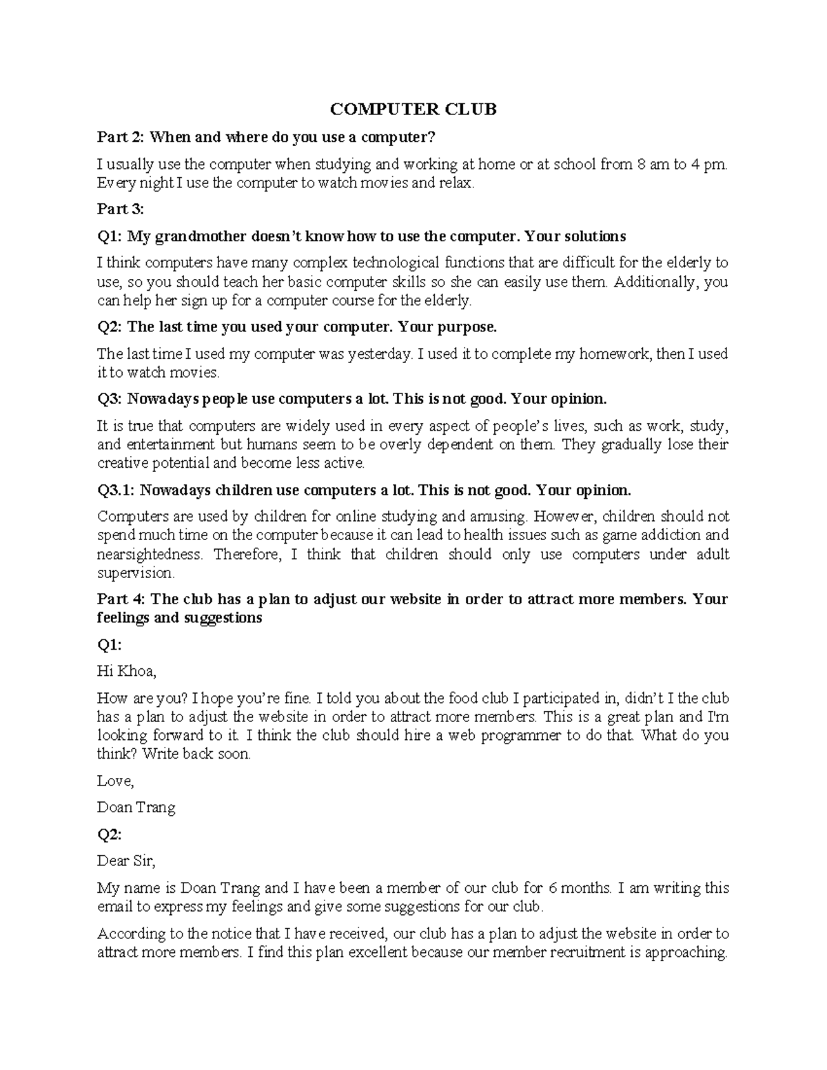 Computer Club - tham khảo - Computer Club Part 2 I often use a computer ...