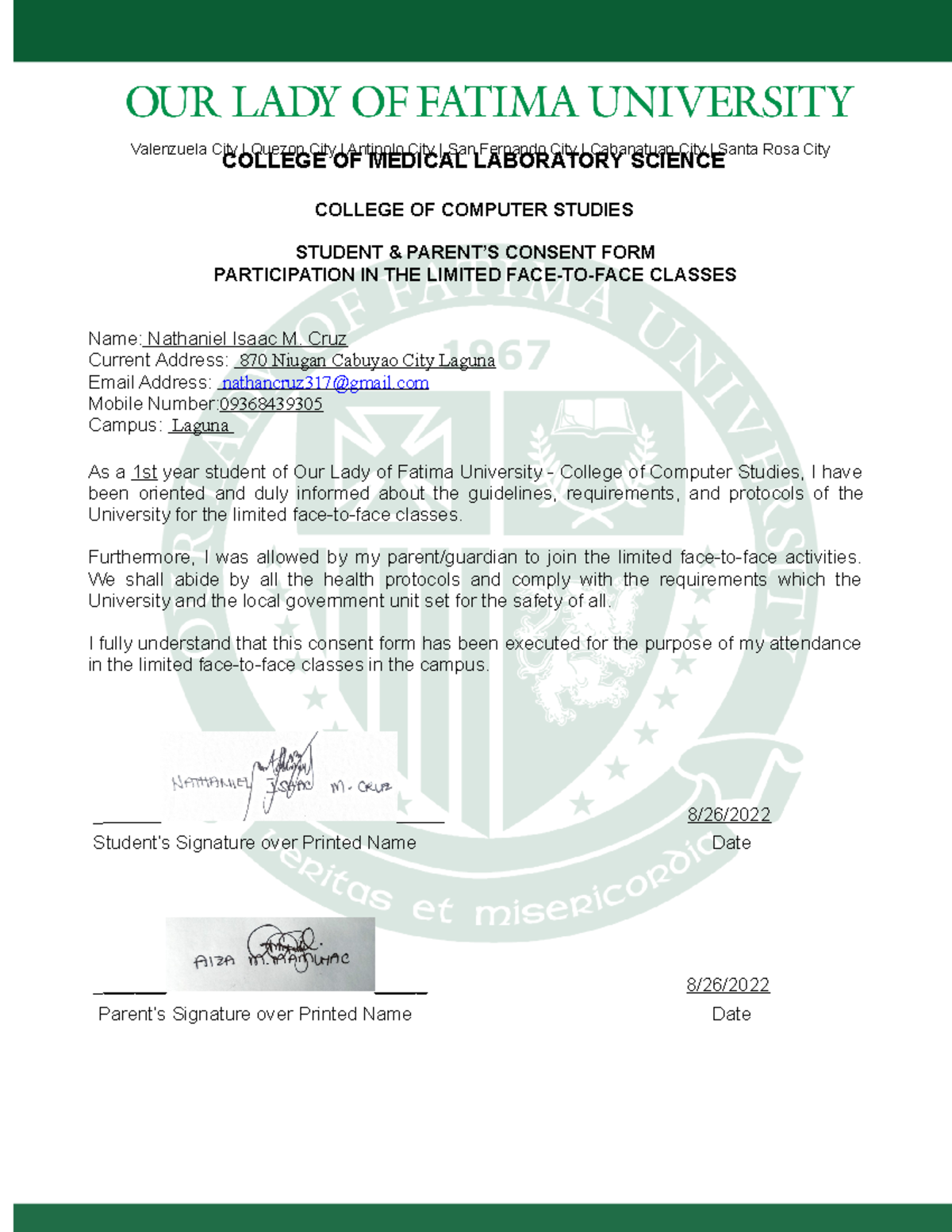 CCS Consent FORM Participating Students - COLLEGE OF COMPUTER STUDIES ...