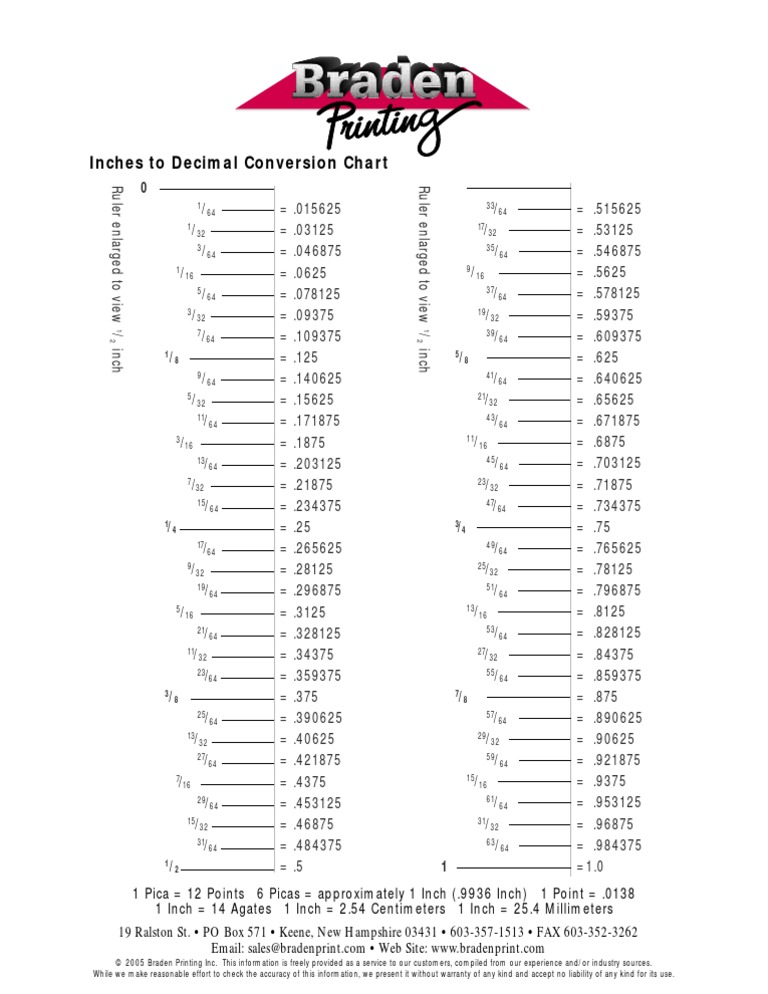 Inches To Decimal Conversion Chart | PDF | Computers