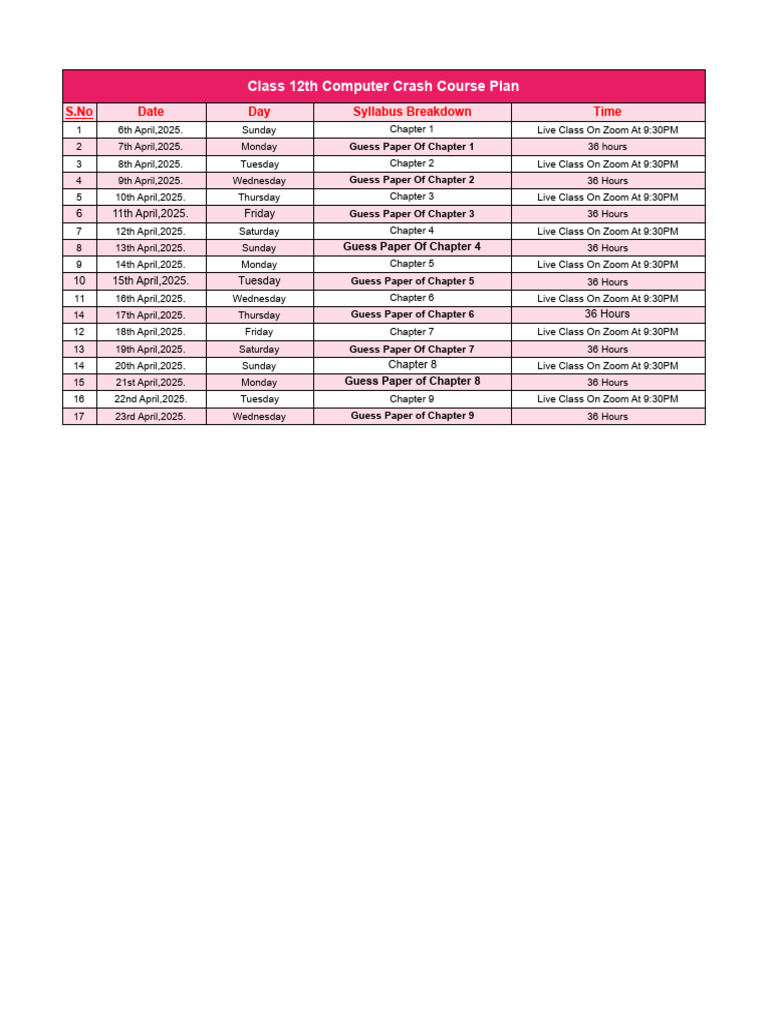Class 12th Computer Crash Course Plan | PDF