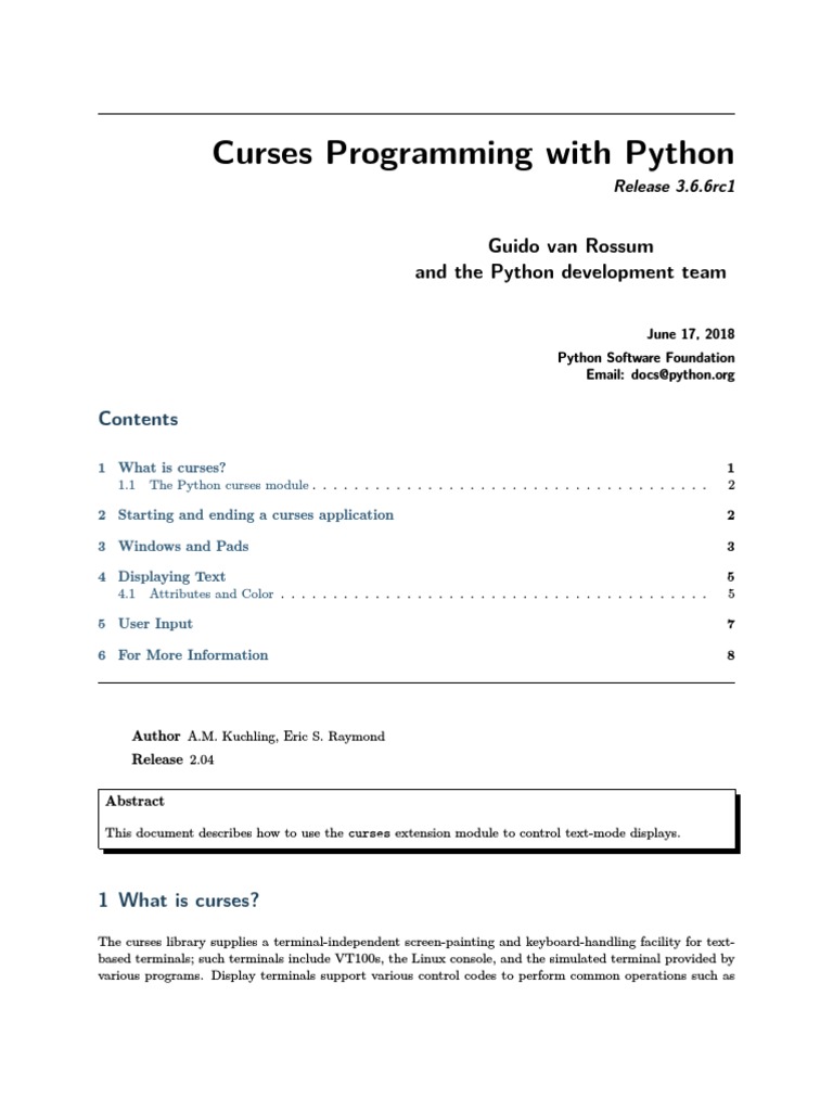 An Introduction to Curses Programming with Python | PDF | Computer ...