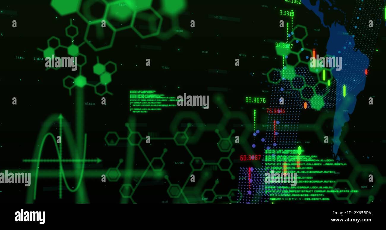 Image of computer and scientific data processing on black background ...