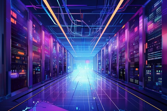 3D rendering. Data processing center for computing. High technology and ...