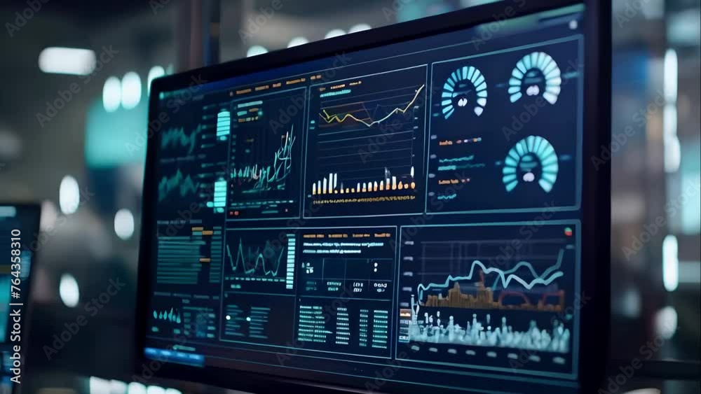 Computer Screen Displaying Data and Graphs in an Office Setting ...